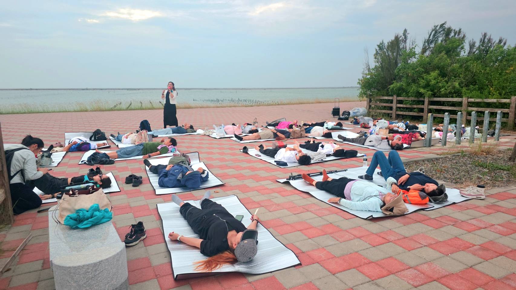 繼9月於雙春濱海遊憩區愛莊園舉辦首場紅樹林主題療癒體驗後,本次以井仔腳瓦盤鹽田及北門潟湖海堤為主場域,結合鹽業文化與自然景觀,打造兼具五感體驗與文化底蘊的海洋療癒之旅;活動由台灣守護文創成功鹽提供優質場域與品牌支持,讓民眾親身體驗傳統鹽業場域與文化傳承;參與者赤腳入鹽田、品嚐鹽工茶、手作鹽滷豆花,並由海洋協會教育長暨LomiLomi國際芳香保健照護協會黃敏菁理事長海堤引導參與者於海堤上面海進行靜心與芳療冥想,在海風與夕照間釋放壓力、回歸平靜;智慧裝置即時紀錄生理變化,顯示心率下降與壓力指數改善,體現海洋療癒的真實力量。