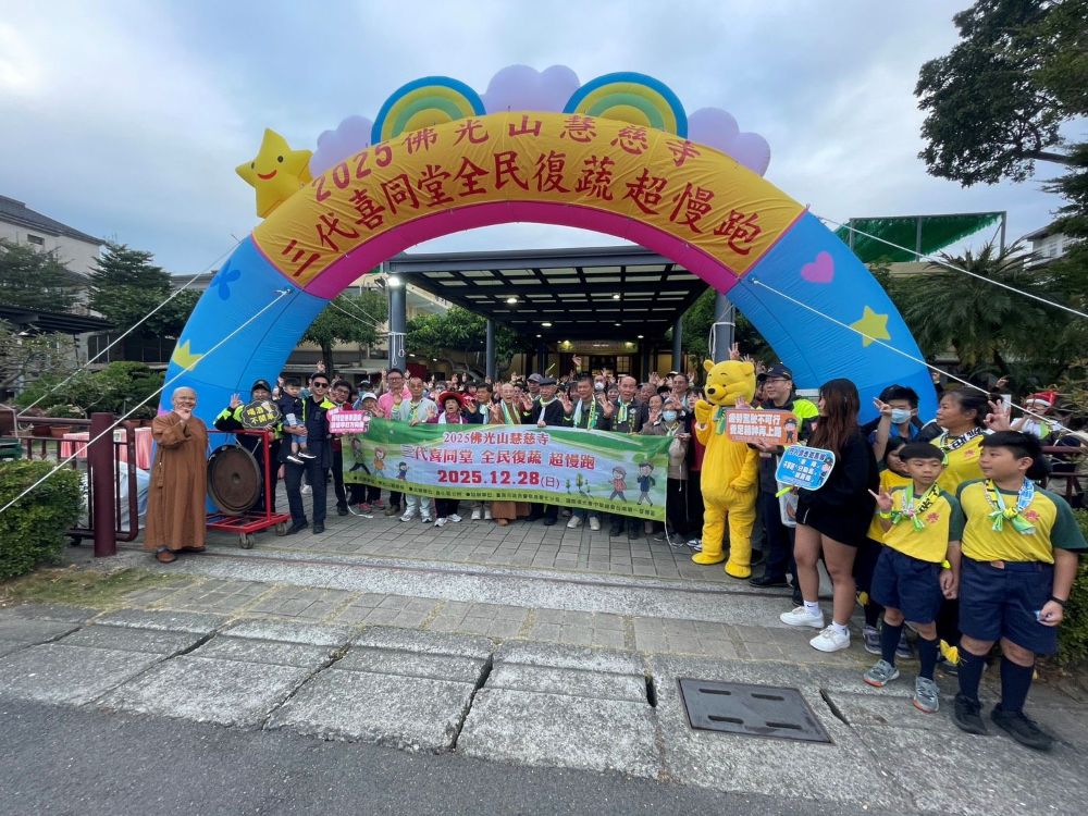 【記者田進山/台南報導】台南市政府警察局善化分局今(28)日配合佛光山慧慈寺舉辦「2025佛光山慧慈寺 三代喜同堂 全民復蔬 超慢跑 非跑不可 Running棟起來」活動,現場吸引許多民眾扶老攜幼熱情參與,氣氛熱絡溫馨。善化分局出動「宣導團」採取走動式宣導方式,深入活動現場與民眾近距離互動,向參與民眾宣導交通安全與反詐騙觀念,並結合超人氣「警察大頭娃娃」與大小朋友互動拍照,在推廣健康運動與蔬食生活的同時,也提醒大家重視自身與家人的安全防護意識。