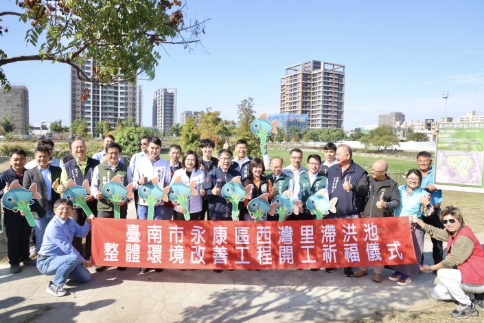 【記者楊朝欽/台南報導】為提升永康區生活品質,將水利設施轉化為多功能公共休憩空間,台南市政府在市長黃偉哲領軍下積極推動「台南市永康區西灣里滯洪池整體環境改善工程」,該案工程由市府籌編3,000萬元經費,將透過高架棧道串聯周邊設施,打造「舞動西灣」景觀亮點,預計於115年9月完工。今(31)日舉行開工儀式典禮,市長黃偉哲偕同眾多貴賓共同見證,期盼藉由工程改善使滯洪池不再僅是單純的防洪水利設施,而是兼具治水、遊憩與生態功能的城市綠洲。