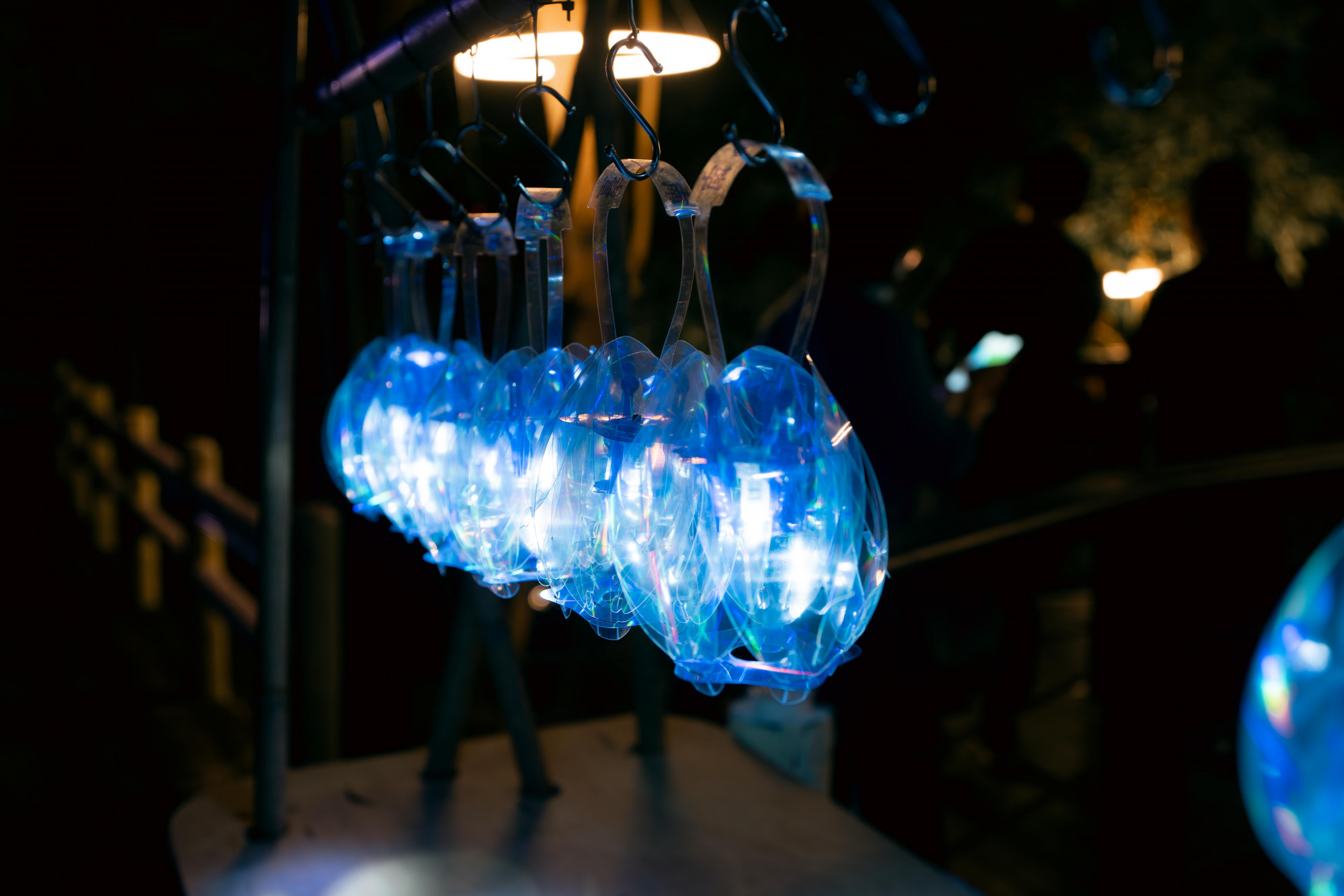 最具標誌性的空山祭提燈,也在連假期間成為民眾夜遊山林的重要陪伴。今年推出的「水晶花提燈」為全臺首款可手動開合的互動式提燈,晶透材質呼應展場光影作品,透過旋轉與開闔,讓光線隨行走節奏自然流動。提燈採用單一可回收材質製作,並以免費循環借用方式提供民眾體驗。文化局呼籲民眾共同遵守借用規範,於離場時歸還提燈,讓這份光影能持續被更多人共享,在安心、有序的環境中,一起愉快地提燈賞燈、感受空山祭的夜間風景。